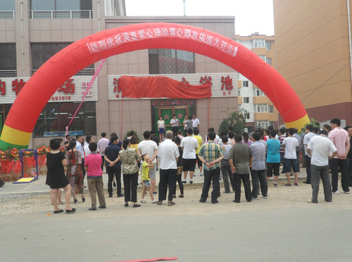 开业庆典上,崔维家和台安满意连锁店总经理赵忠良共同为满意爱心浴池、满意爱心理发店揭牌。(董克俭 赵莹光)