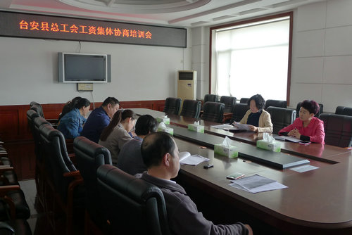 4月7日,县总工会举办工资集体协商培训会,参加会议的有六和嘉好有限公司、鞍山雨虹门窗有限公司、台安电气承装工程处、台安供热公司、鞍山少帅实业有限公司等基层工会相关工作人员。会上,县总工会相关负责人对本次培训作了宣传动员,并对下一步工作提出指导。希望通过此次培训,让参训的基层工会工作人员进一步掌握了工资集体协商的意义、法律依据、协商内容和操作流程等,对进一步抓好工资集体协商工作起到了助推作用。